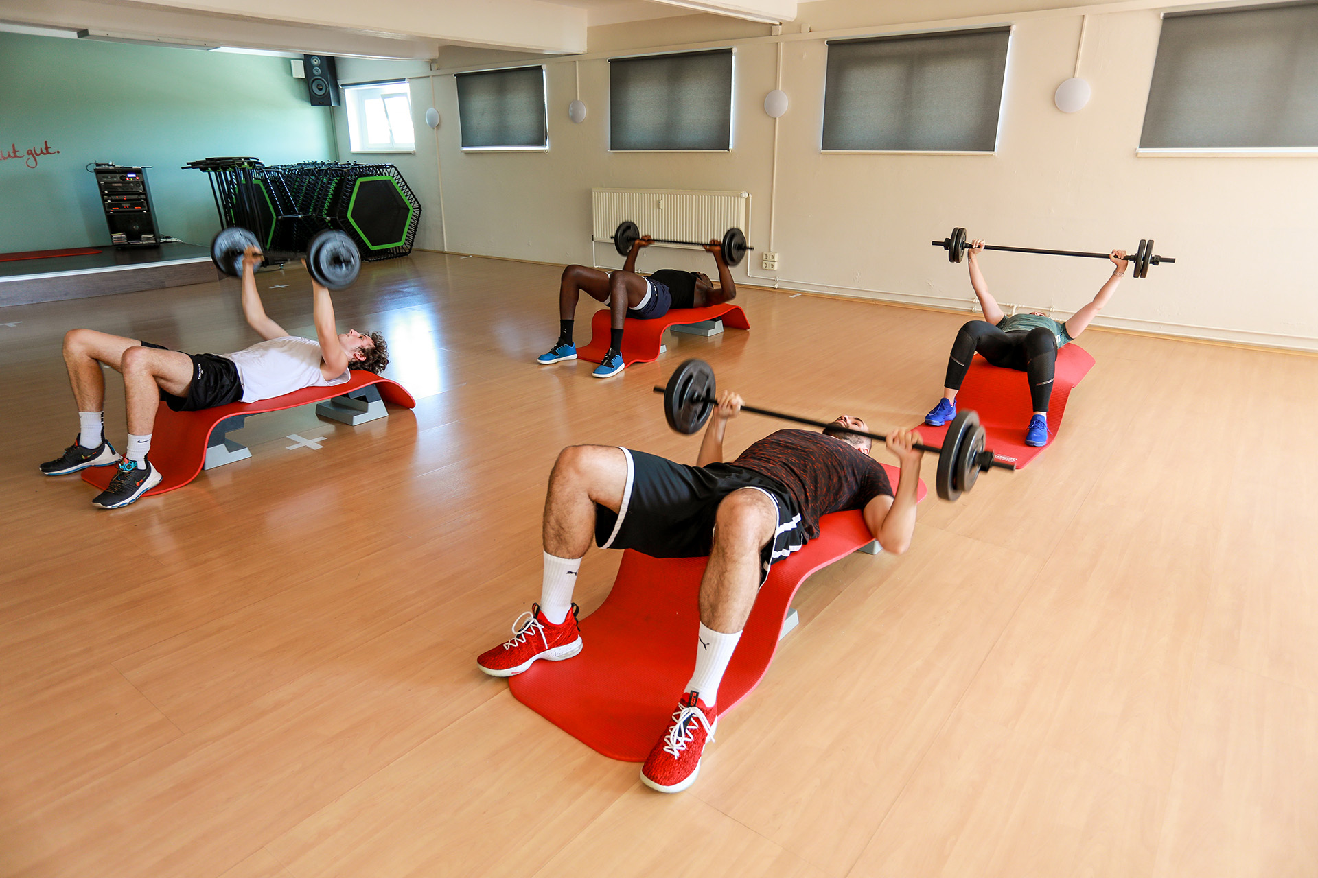 Modernste Geräte und Trainingsmethoden: In unseren zwei großzügigen Kursräumen kannst du mit hochwertigem Equipment fast jede Art von Kurs belegen und das Ganze ohne jegliche Zusatzkosten.